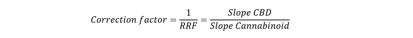 The pharmacopoeial procedure uses a single calibration reference (CBD) together with correction factors to calculate the contents of THC(A), CBDA, and CBN(A). These correction factors are derived from relative response factors (RRFs), i.e. the detector response of individual cannabinoids relative to CBD.